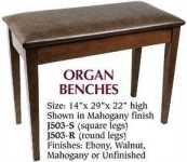 The look and feel of these quality organ benches is the result of our constant attention to detail. All benches are constructed of hardwood Maple legs.