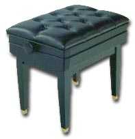 The Concerto II Bench comes in standard and duet sizes. Click here for picture of the Duet Size. The bench comes in Black or Brown Vinyl or Leather hand tufted top, as shown below. Benches come in any of the leg choices below. Available also in finishes shown below. The bench is 15.5" W x 18.5" L x 18.5" - 21" H - Standard Size or 15.5" W x 35" L x 18.5" - 21" H - Duet Size Be sure to select your correct leg style pictured at right as well as the correct finish and covering materials in the options section below.
