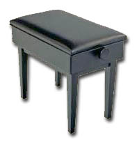 The Concerto III bench has smooth topped seat. Designed for long life of concert musicians. It comes in a black or brown Vinyl top. All finishes shown below, and choice of spade or tapered leg shown above.