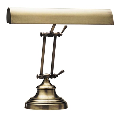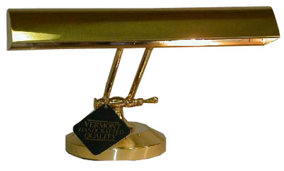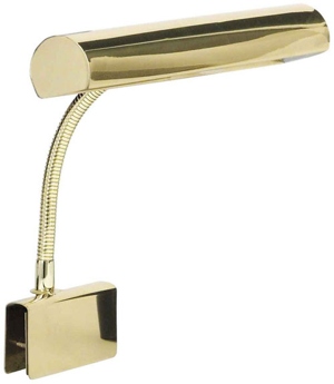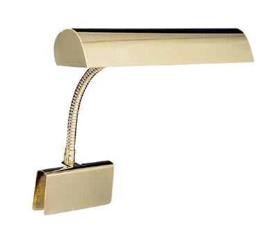 This polished brass finished lamp comes with a 22 inch rotating shade, and clips onto a piano music rack or music stand to illuminate your music, while being out of the way.