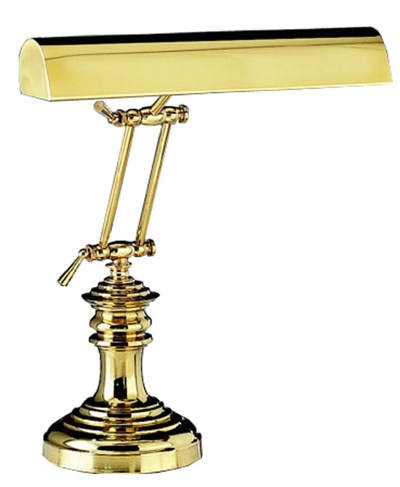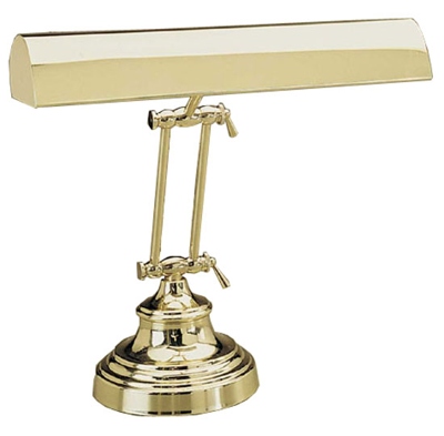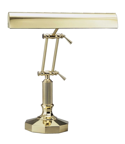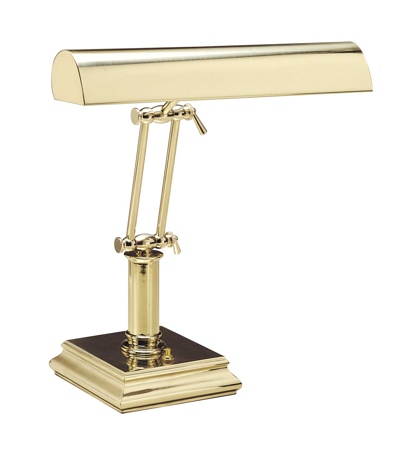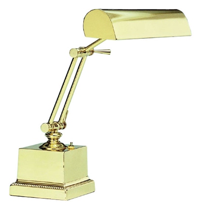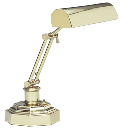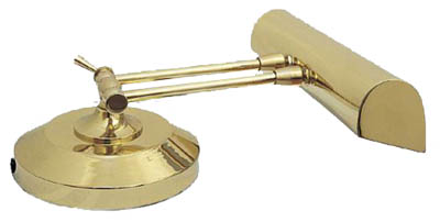 This two way adjustable polished brass lamp with round 6 in. base offers light for desks or pianos.