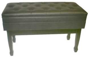The Woodmaster Artist Benches come with a machine tufted vinyl or leather top and come with a small sheet music storage compartment under the seat. It is 15" Wide x 35" Long and adjusts from 18"-22" in height. The leather top is only available in the Ebony High Gloss Finish. See below for finish choices and additional details. Finish/Top - left to right: Ebony High Gloss, Ebony, Walnut, and Mahogany